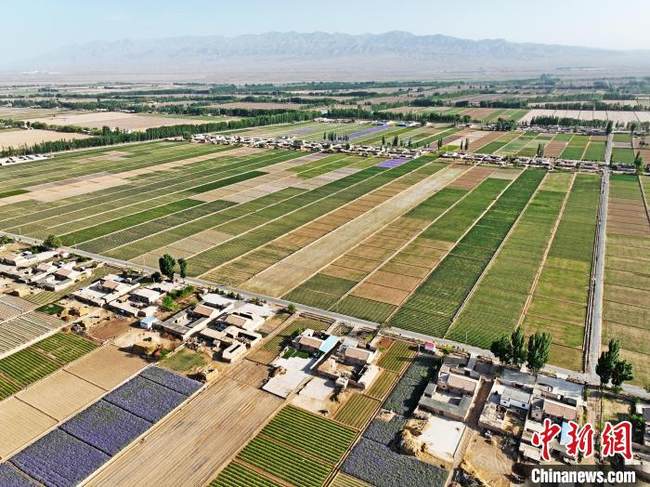 D’estate, le campagne dei villaggi di Hongxin e Wutong, della cittadina di Luotuocheng, nella contea di Gaotai, a Zhangye, nella provincia del Gansu, costellate di case sparse tra campi di una miriade di colori, formano un fantastico paesaggio rurale.