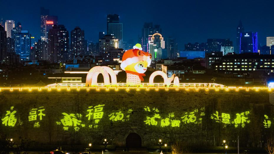 Nanjing, le mura decorate dalle lanterne giganti per celebrare la Festa di Primavera