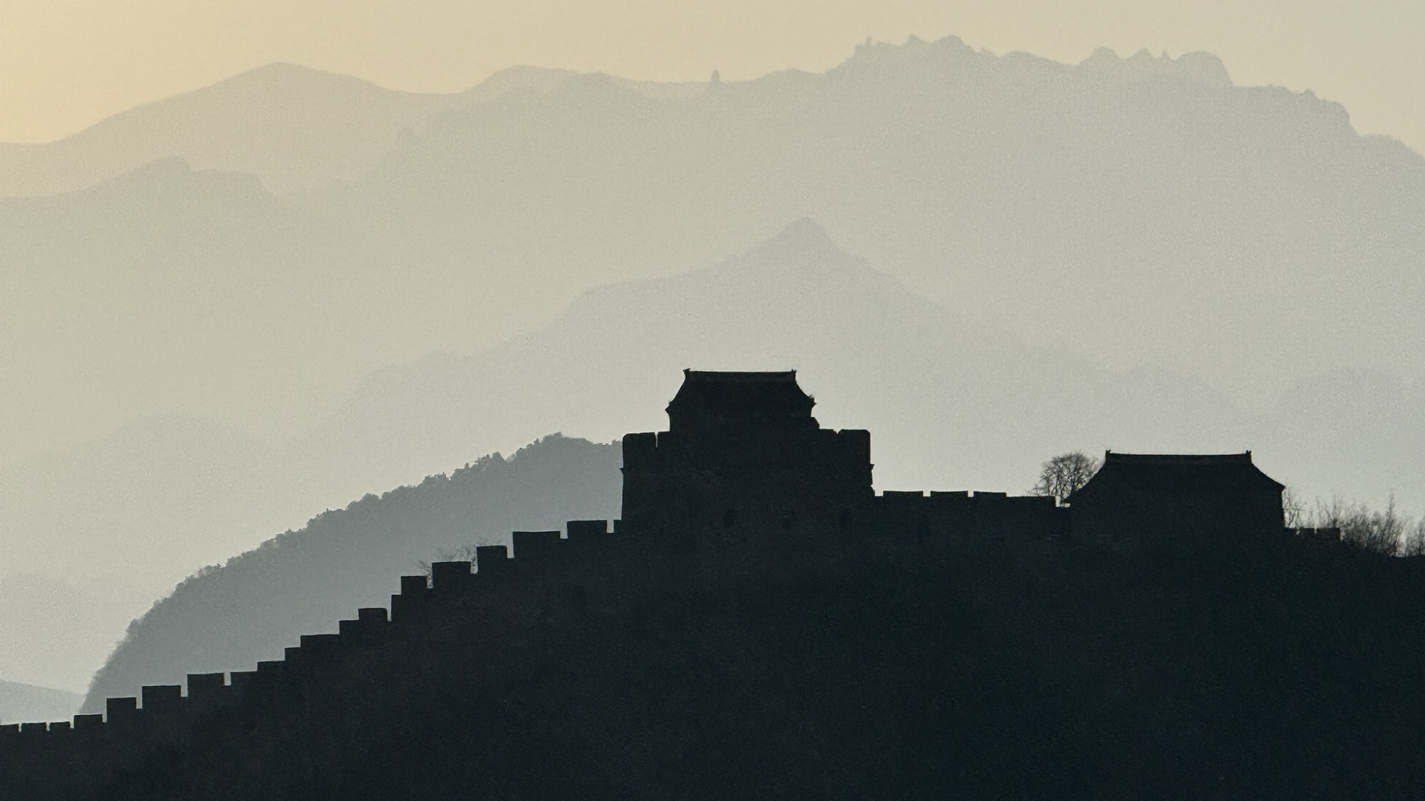 Chengde: la grande muraglia avvolta nella foschia come un dipinto a inchiostro