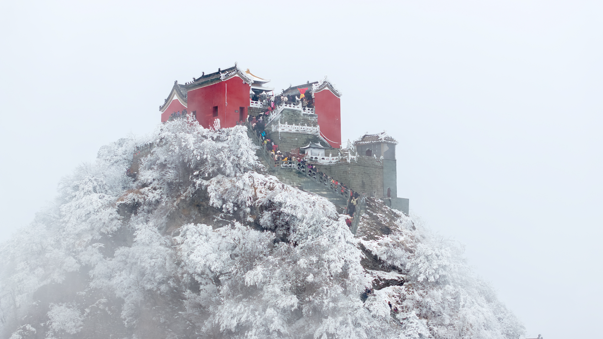 Shiyan: la cima del Monte Wudang avvolta da nebbia e neve
