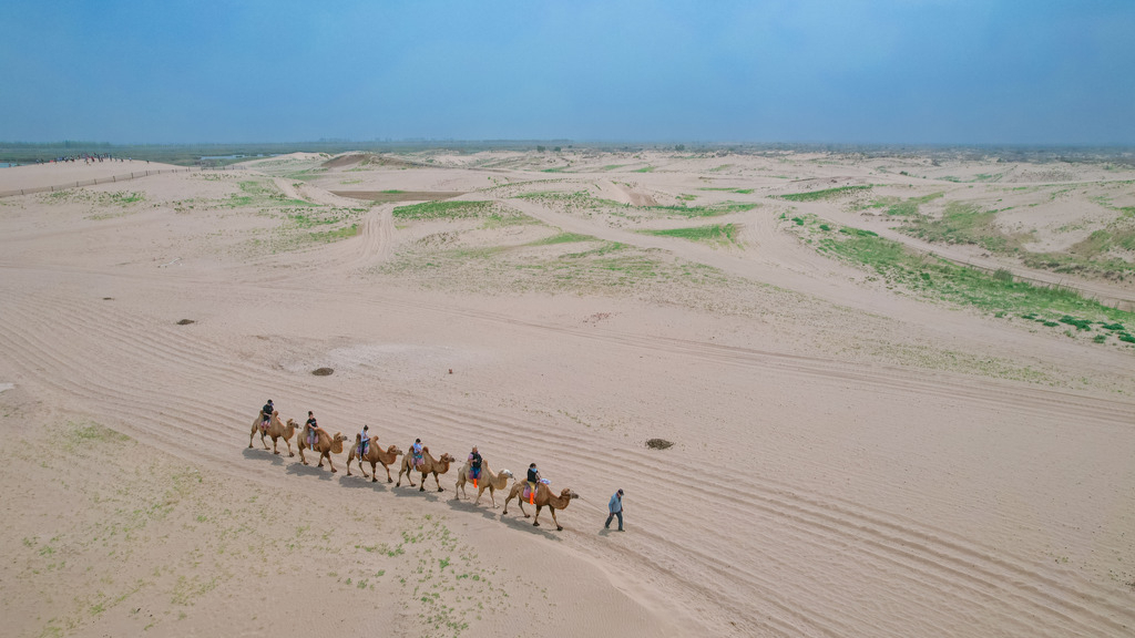 Ad agosto, nella contea di Pingluo (città di Shizuishan) della Regione Autonoma Hui di Ningxia, la zona panoramica del Lago Shahu offre uno spettacolo unico: acque cristalline che si muovono dolcemente e dune di sabbia che si susseguono senza fine. I turisti possono cavalcare cammelli nel deserto, scivolare giù dalle dune sulla sabbia e navigare in barca attraverso il labirinto di canne palustri nel lago, ammirando l’unico paesaggio “metà deserto e metà lago”.