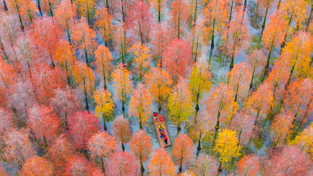 Il 9 novembre 2025, il bosco di metasequoia della zona umida del Lago Hongze a Sihong, Jiangsu, è entrato nel migliore periodo turistico. L’intero bosco, avvolto da un manto rosso, ha attirato un gran numero di visitatori affascinati da questo quadro naturale.