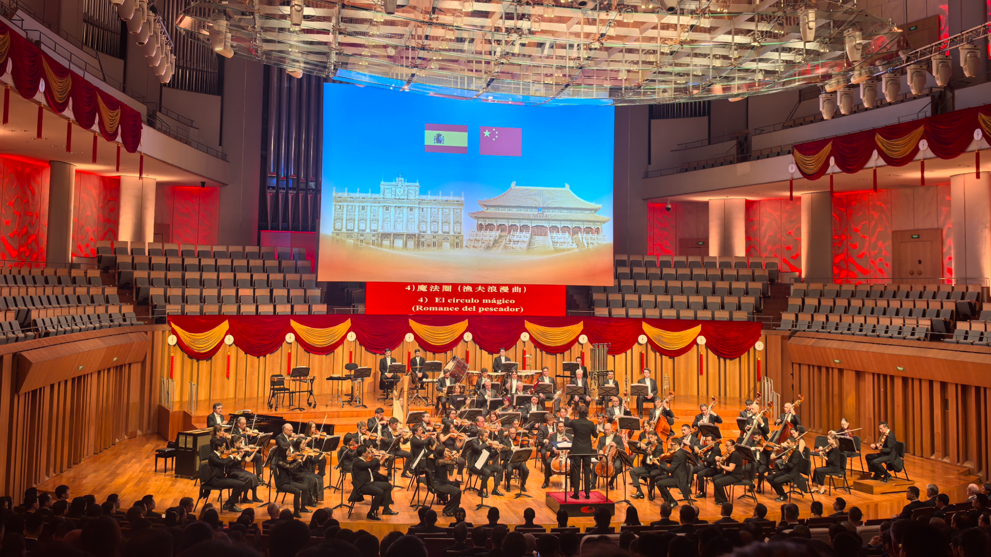 Xi Jinping e la consorte Peng Liyuan hanno assistito al concerto del Teatro Real di Spagna insieme al Re Felipe VI e alla Regina Letizia