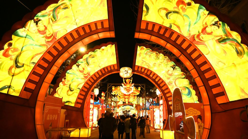 La sera del 13 gennaio 2026, a Jiuguan, provincia del Gansu, i turisti hanno ammirato le lanterne alla Fiera delle lanterne di Dunhuang, organizzata nel mercato notturno della città.