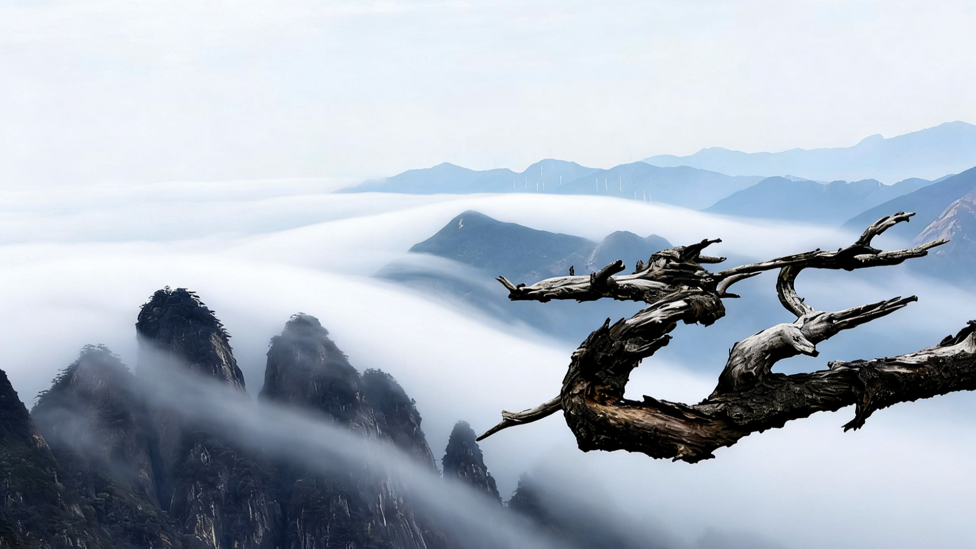 Jiangxi, spettacolare mare di nuvole invernale tra le montagne