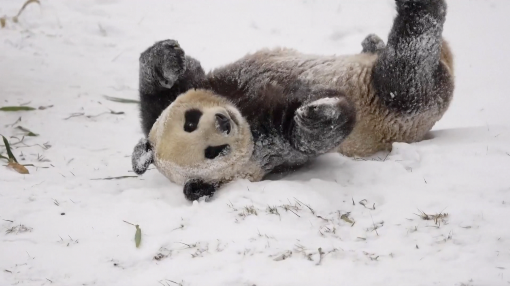 Shaanxi, panda giganti si divertono sulla neve