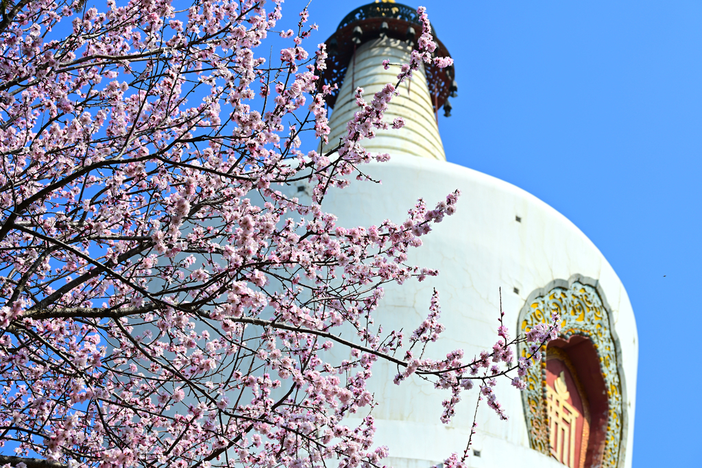 14 marzo 2026, Beijing. Con l'aumentare della temperatura, i peschi nel Parco Beihai sono entrati in piena fioritura, con alberi carichi di fiori che rivaleggiano per la bellezza.
