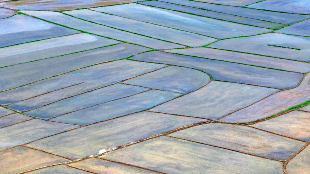 Il 1° aprile 2026, nell'area del villaggio di Donghu, nella contea di Taihe, a Ji'an, provincia di Jiangxi, i campi arati e irrigati appaiono puliti e ordinati, con i solchi che si intrecciano. Le linee dei solchi, nette e ben definite, disegnano un quadro idilliaco della zona di fiumi e laghi a sud del Fiume Azzurro.