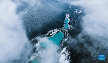 Le foto aeree scattate il 13 gennaio mostrano lo scenario invernale della valle di Lanyue (Blue Moon) a Lijiang, nella provincia dello Yunnan.