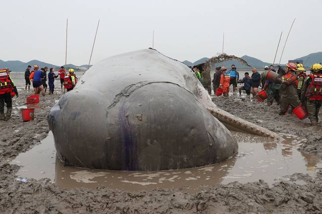 1. In primo luogo c’è il problema della marea. Il corpo della balena è troppo grande e pesante, e senza la spinta del galleggiamento fornita dal mare, una volta spiaggiata i suoi organi interni e le sue ossa non riescono a sostenere il suo peso e può finire per soffocare perché non riesce più a respirare o per lo sfinimento. Se viene trainata in mare in modo affrettato, i suoi organi interni possono subire traumi e ferite, le ossa fratturarsi e le articolazioi lussarsi, causandole danni fisici ancora più gravi.