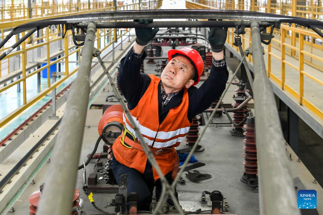 Il 12 maggio, gli operai ferroviari hanno effettuano la manutenzione su un treno merci. Per garantire la sicurezza e l’operazione stabile sulla ferrovia Datong-Qinhuangdao, gli operai della China Railway Taiyuan Group Co., Ltd. hanno condotto regolarmente la manutenzione sui treni merci di carico pesante dopo la consegna del carico.