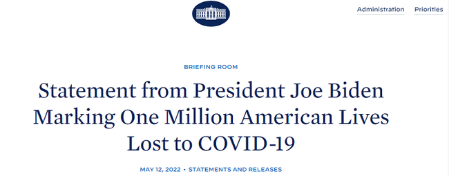 Secondo una dichiarazione rilasciata dalla Casa Bianca il 12 maggio, il Presidente degli Stati Uniti Joe Biden ha annunciato che l’epidemia di Covid-19 ha provocato in tutto il paese un milione di morti.