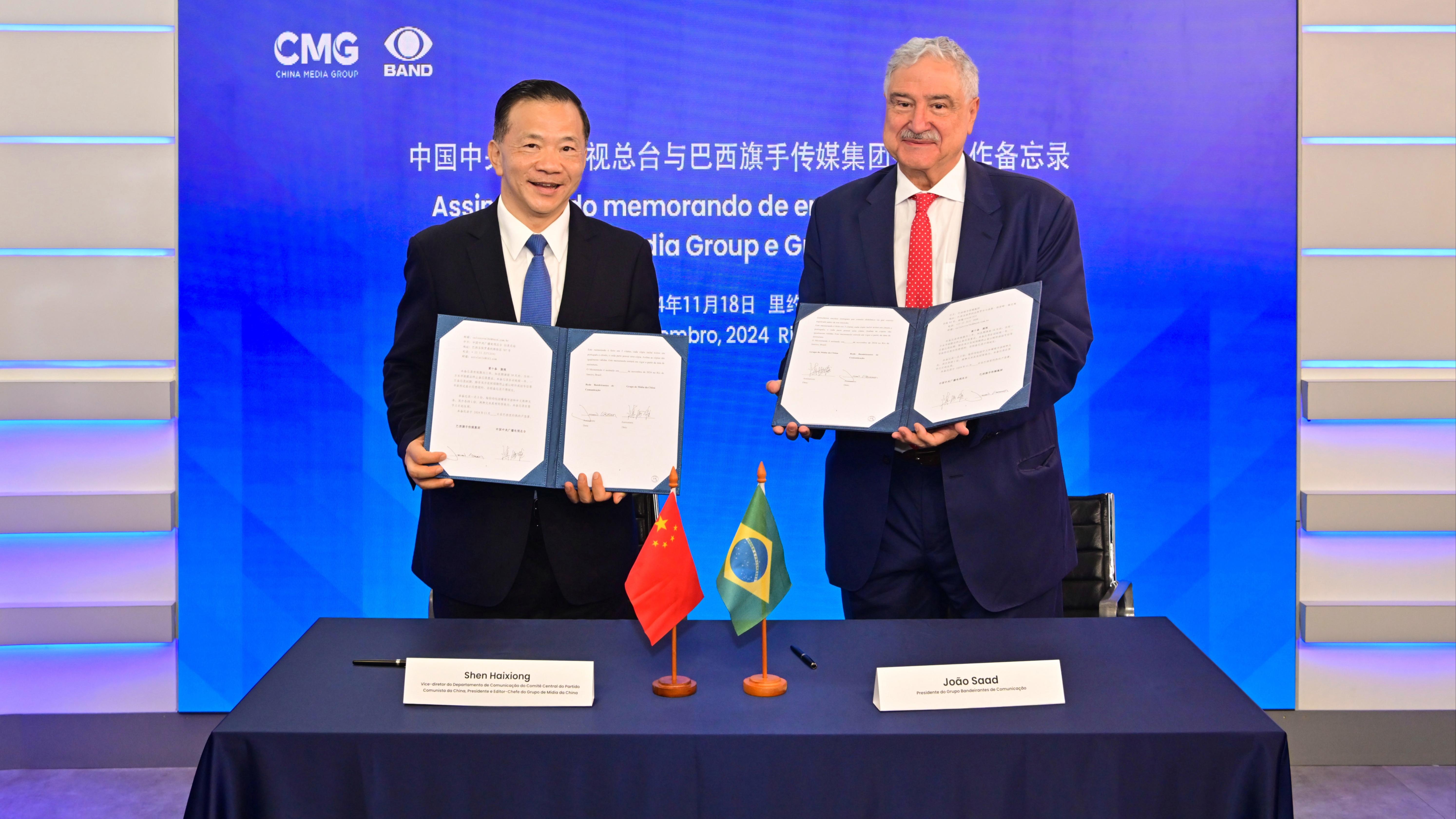 Il 18 novembre, ora locale, il China Media Group e il brasiliano Bandeirantes Communication Group hanno firmato un memorandum di cooperazione a Rio de Janeiro. Le due parti hanno raggiunto un accordo sulla cooperazione nella produzione di programmi, sull'applicazione delle innovazioni tecnologiche e sullo scambio di personale. Shen Haixiong, vice direttore del Dipartimento della Comunicazione del Comitato
