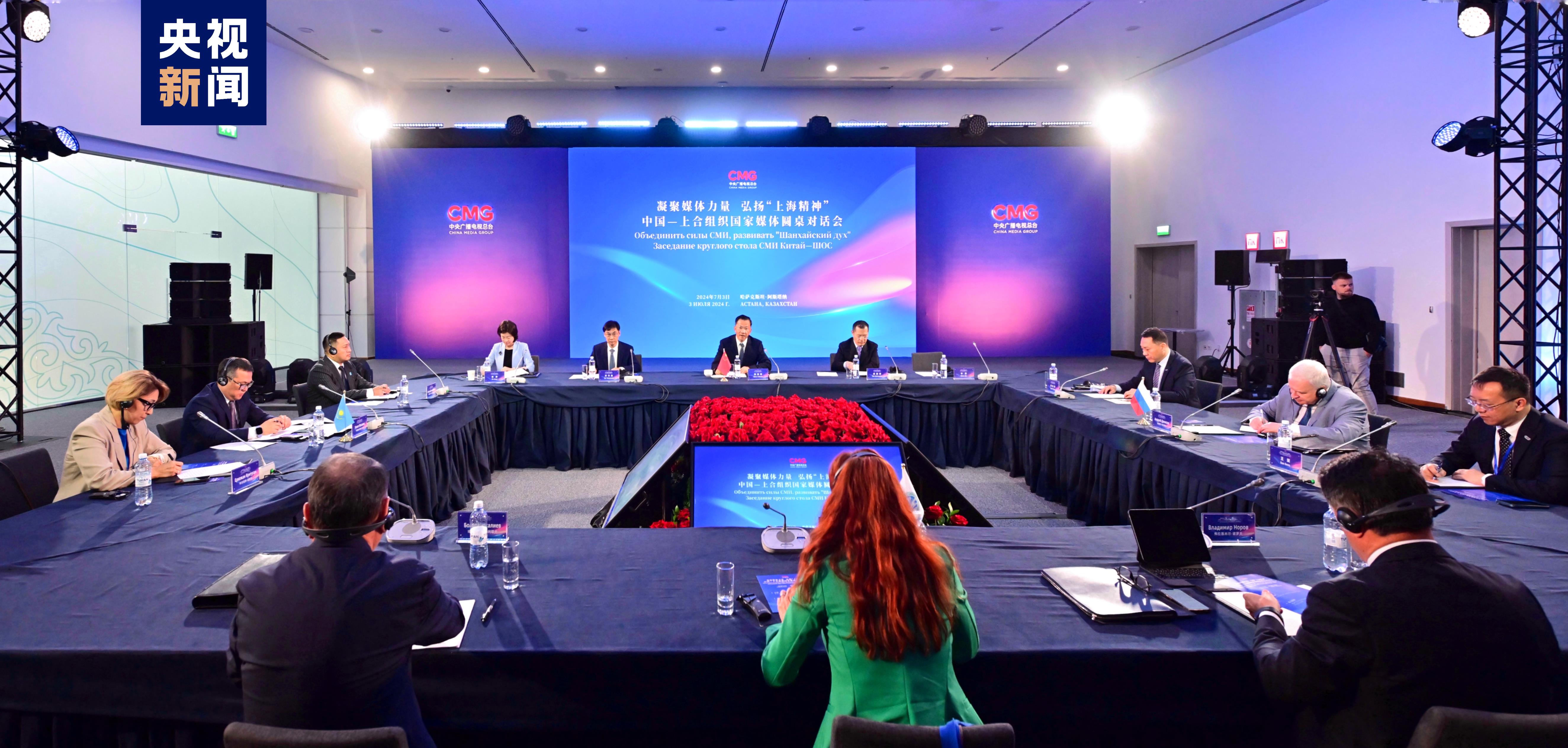 Il 3 luglio, in occasione della 24a riunione del Consiglio dei capi di Stato dell'Organizzazione per la cooperazione di Shanghai (SCO), si è tenuta ad Astana la tavola rotonda sui media Cina-SCO organizzata da China Media Group. Funzionari governativi e capi delle principali organizzazioni mediatiche dei paesi SCO hanno avuto scambi approfonditi sul tema "Concentrare il potere dei media e promuovere