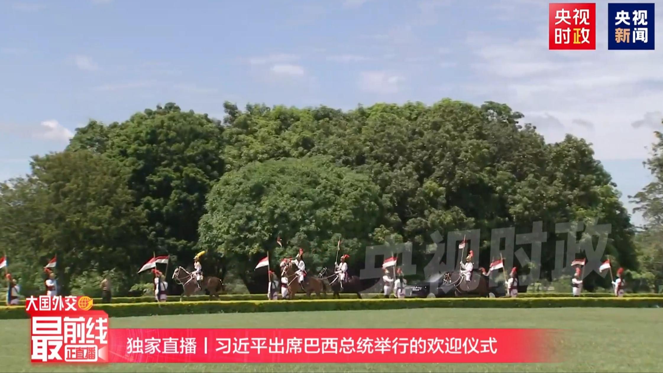 Il 20 novembre a Brasilia, il Presidente cinese Xi Jinping si è recato alla residenza presidenziale del Brasile, scortato dal Reggimento di Cavalleria delle Guardie (Cavalaria de Guardas), dove ha partecipato alla cerimonia di benvenuto organizzata dal Presidente brasiliano Luiz Inácio Lula da Silva.