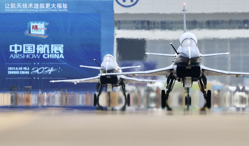 Il 26 settembre 2021, a città di Zhuhai in provincia di Guangdong, le due squadre dello spettacolo aereo osia la squadra “il primo agosto” e “il falcone rosso ” dimostreranno le loro abilità nello stesso campo della mostra.