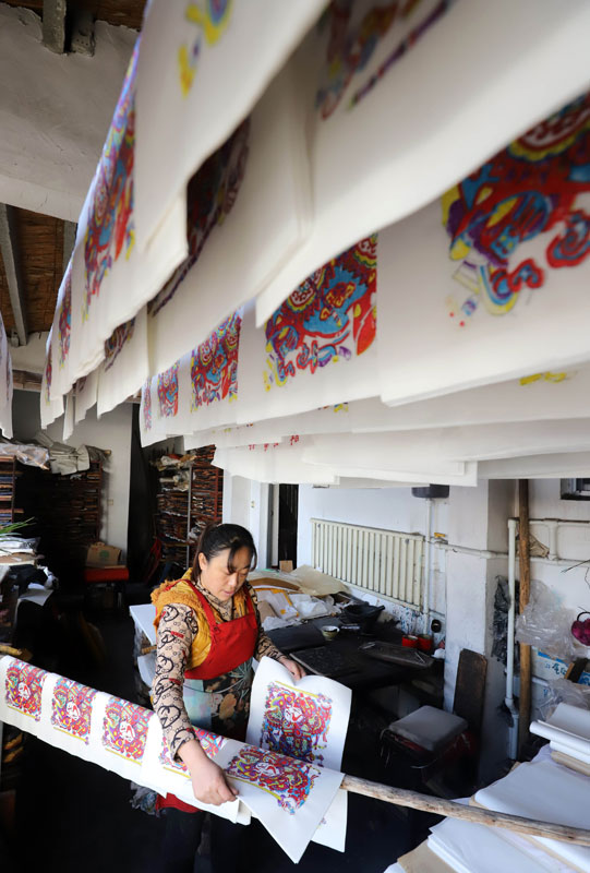 Con l’avvicinarsi del nuovo anno, gli artisti del villaggio di Yangjiabu nel distretto di Hanting della città di Weifang, nello Shandong, si affrettano a incidere su legno quadri a tema Capodanno per il mercato festivo.