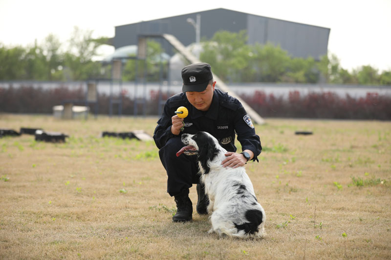 Nel campo di addestramento dei cani polizieschi della città di Rizhao, l’istruttore Zhang Shuzhao sta addestrando un cane poliziesco a compiere gli esercizi quotidiani. Per ogni tipo di allenamento, ricerca olfattiva, esecuzione dei comandi, individuazione di esplosivi, ricerca e salvataggio di persone, ci vogliono oltre 2000 ripetizioni e la pratica di almeno un anno, perché un cane di polizia riesca da zero a raggiungere lo scopo prefissato.