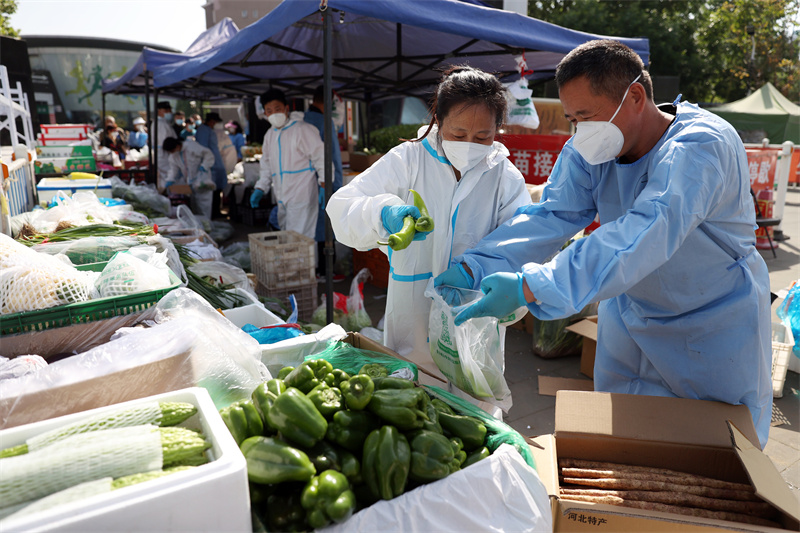 Covid, Beijing: assistenza dei lavoratori del quartiere per la spesa di verdura dei residenti locali(2/5)