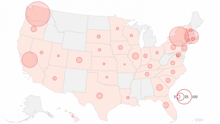 Secondo quanto riportato dalla CNN, fino alle 19 del 10 marzo sono stati confermati casi di Covid-19 in almeno 37 stati degli Usa e a Washington D.C., i casi confermati hanno superato i 900 e ci sono stati almeno 29 morti