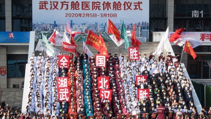 Il 10 marzo, tutti gli ospedali modulari a Wuhan sono stati chiusi. Il giorno della chiusura il personale sanitario ha celebrato davanti all’ospedale di Wuchang a Wuhan
